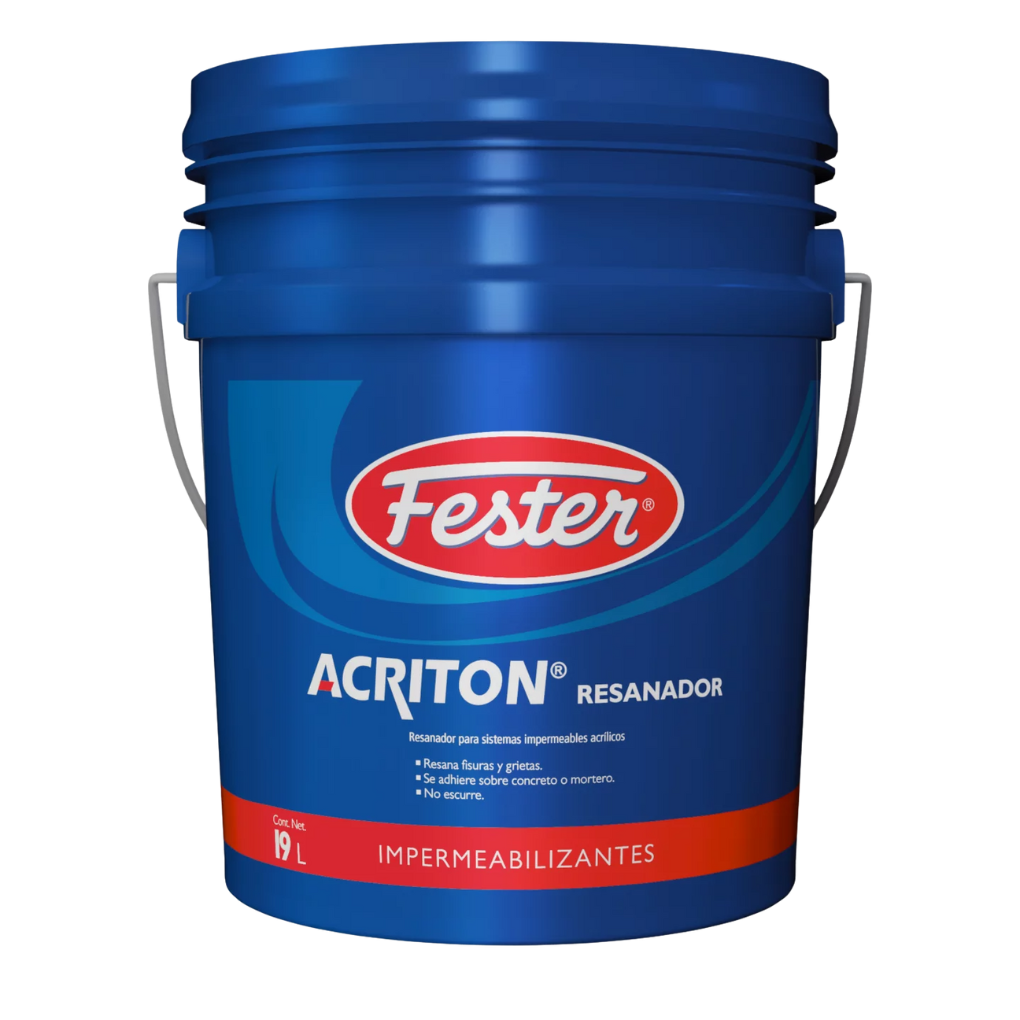 Resanador con excelente adherencia sobre concreto y mortero FESTER® ACRITON RESANADOR es un material de consistencia pastosa, formulado a base de resinas acrílicas estirenadas base agua, rellenos minerales y alto contenido de fibras naturales libres de asbesto. Para resanar fisuras, grietas y ranuras en superficies de concreto y mortero con anchura y profundidad máxima de 5mm previo a la aplicación del sistema impermeable acrílico. Resana fisuras y grietas